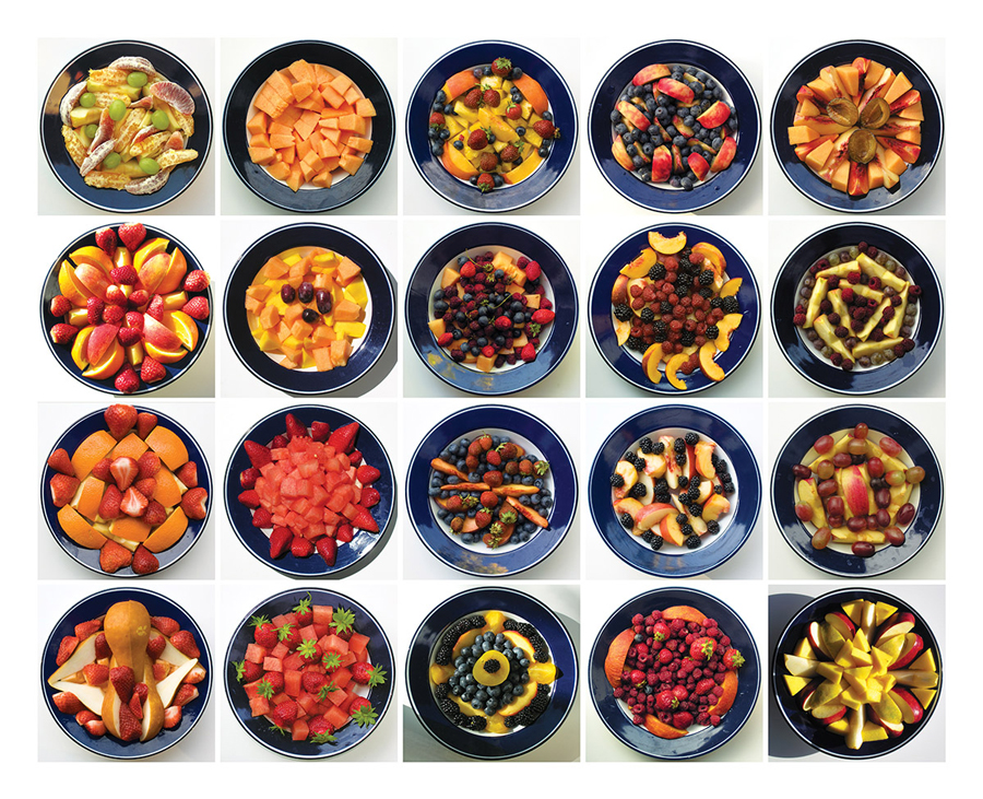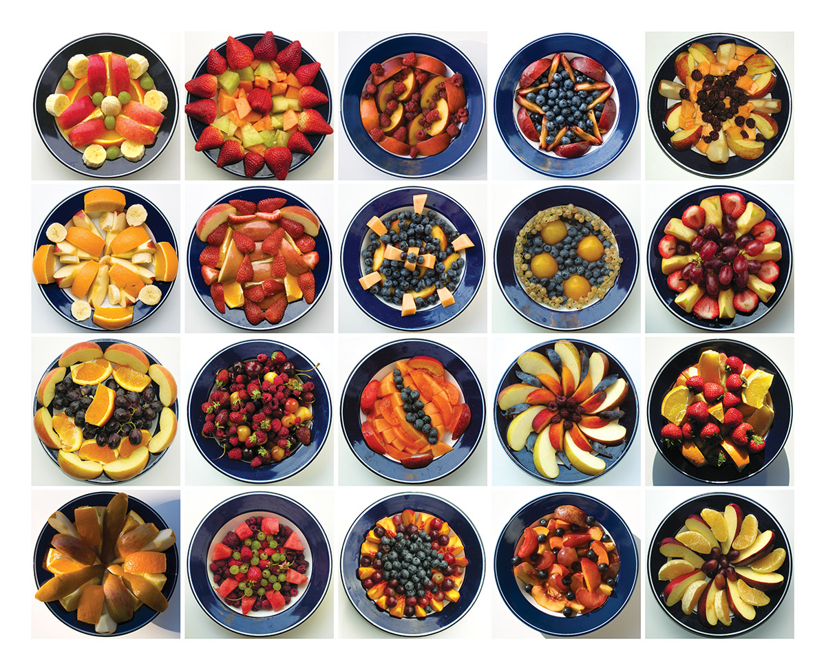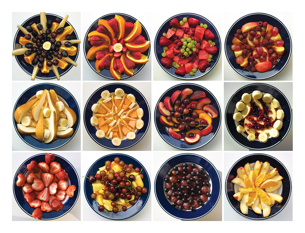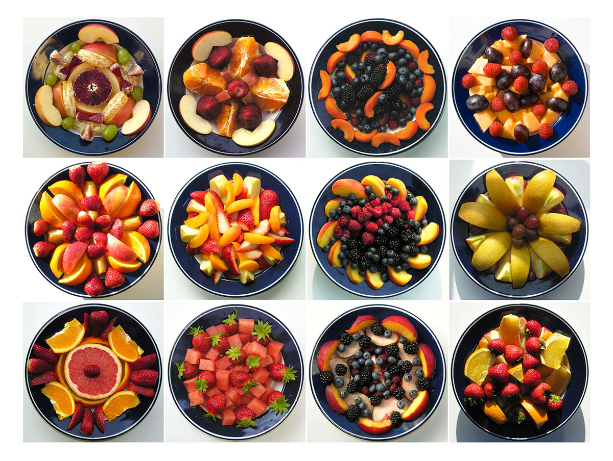 A number of re-sized and arranged Fruit Plate prints are available for sale. See details below. Custom sizes and arrangements are available upon request. All images are printed on Silver Rag archival inkjet photo paper, mounted and framed with UV protective plexiglass. Prices include a finished, ready to hang product of the finest quality in either wood or metal frames. Exotic framing options are available upon request.