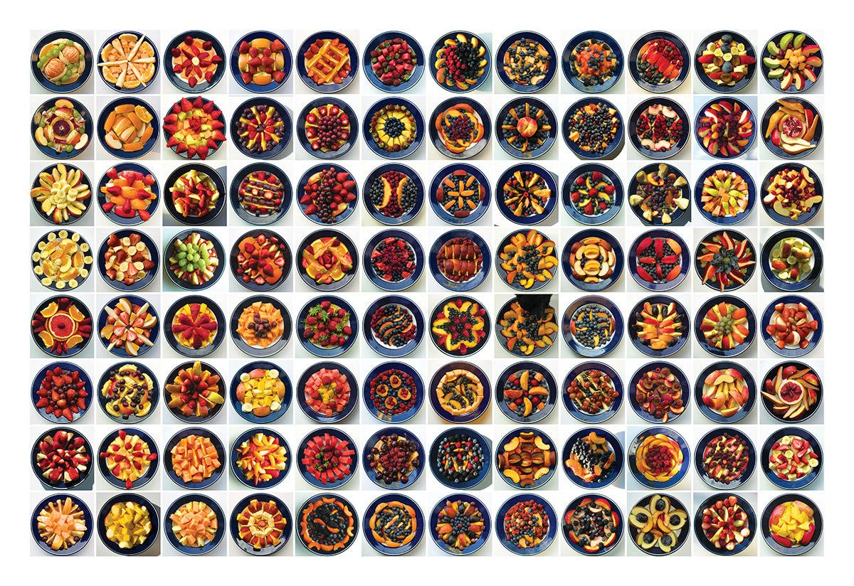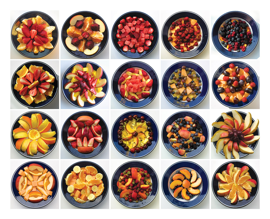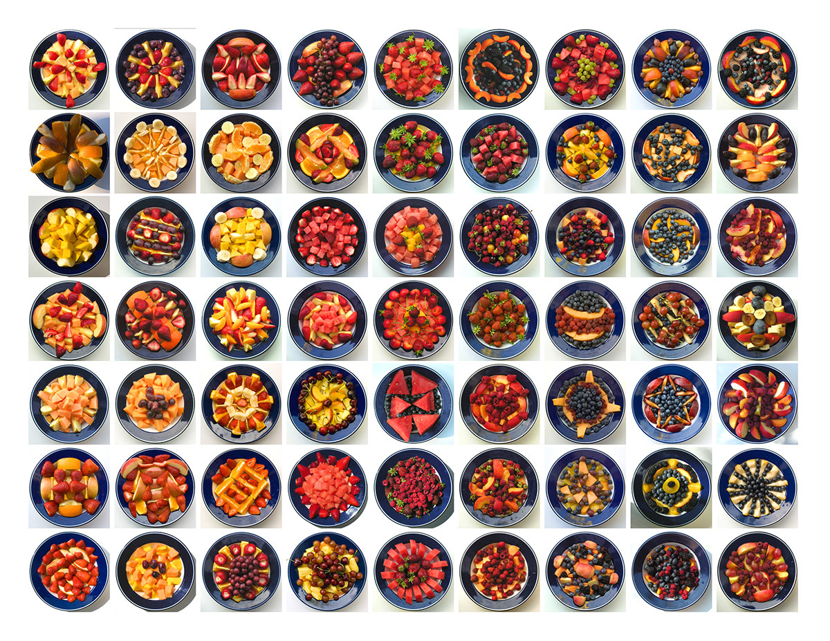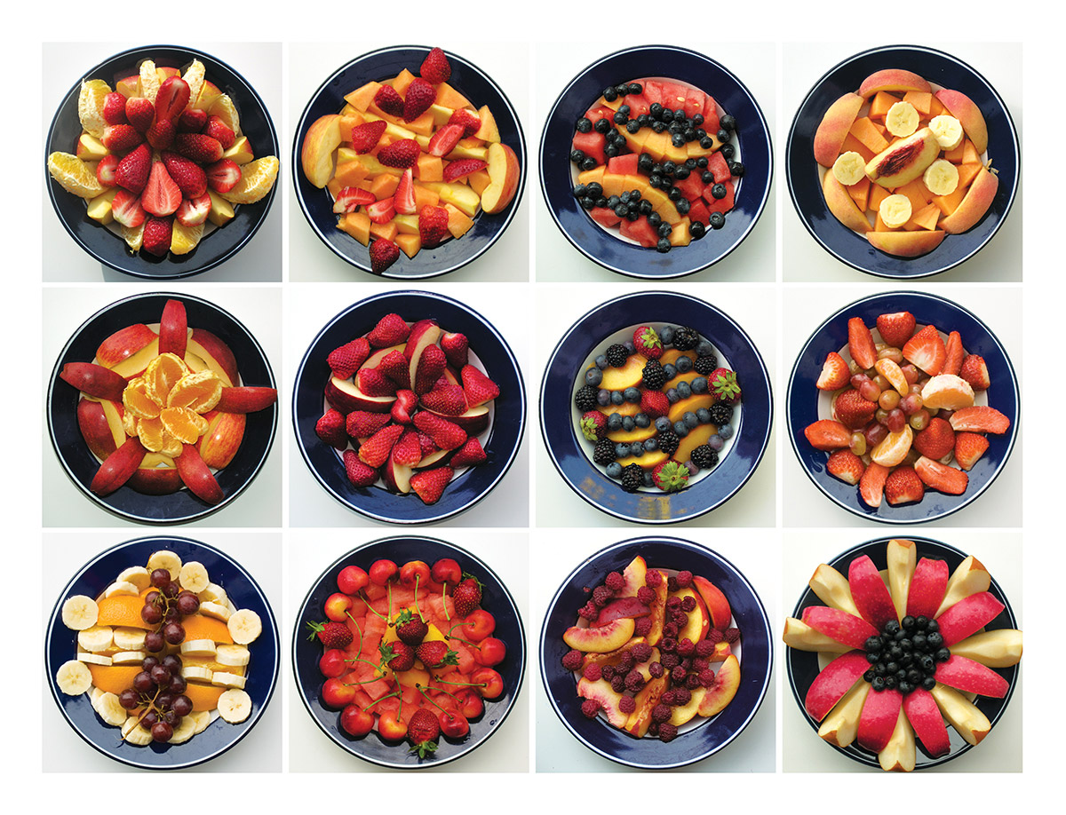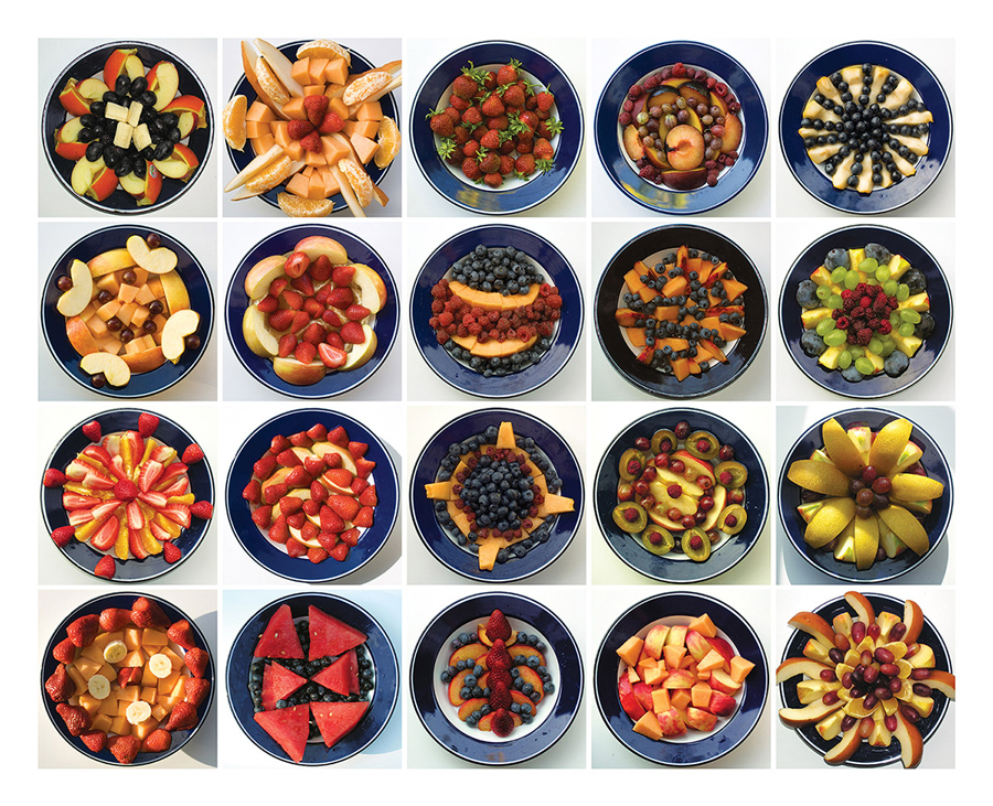 A number of re-sized and arranged Fruit Plate prints are available for sale. See details below. Custom sizes and arrangements are available upon request. All images are printed on Silver Rag archival inkjet photo paper, mounted and framed with UV protective plexiglass. Prices include a finished, ready to hang product of the finest quality in either wood or metal frames. Exotic framing options are available upon request.